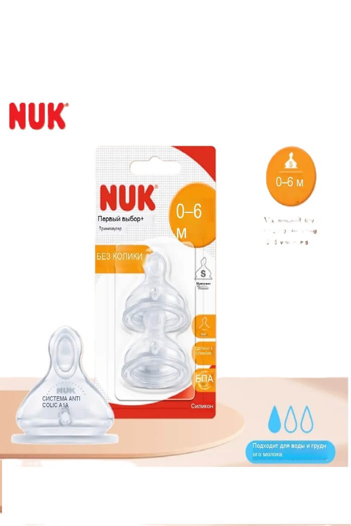 Соска на бутылочку Силикон NUK 0-6мес 2шт