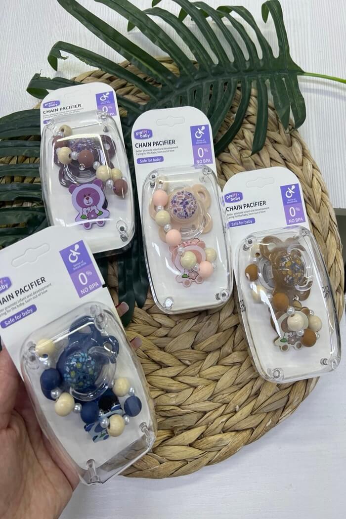 Соска силикон с прикусом+соскодержатель Pretty baby 0+мес (Цвет: Синий)